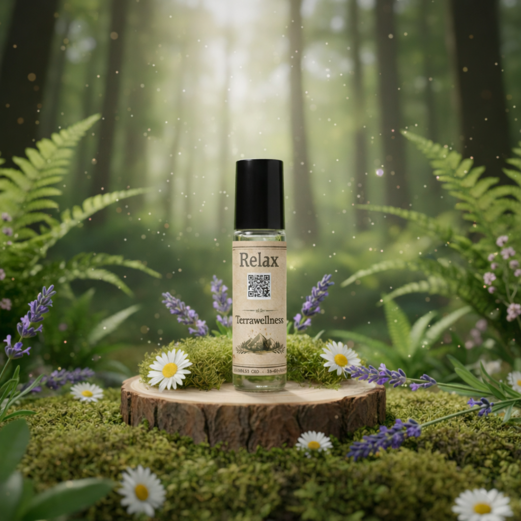 Mezcla aromaterapéutica en formato roll-on, elaborada con aceites esenciales de lavanda, naranja dulce y bergamota, conocidos por sus propiedades calmantes y relajantes.